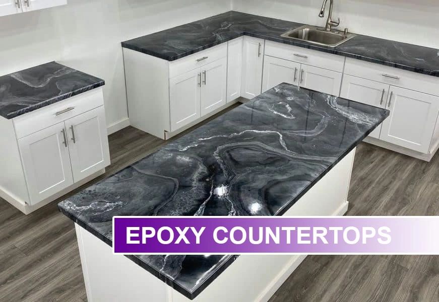 Epoxy offers a durable, non-porous, and customizable surface that can mimic the look of natural stone at a lower cost.